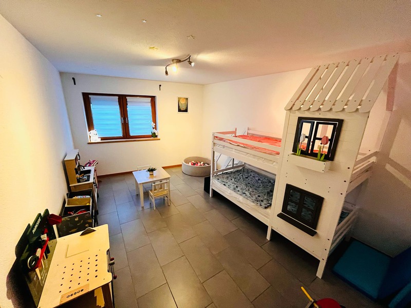 Unser voll ausgestattetes Kinderzimmer ist ein wahres Paradies! Mit einer Kinderküche, die mit tollen Soundeffekten begeistert, einer Kinderwaschmaschine mit Bügelbrett, einer Werkbank, einem