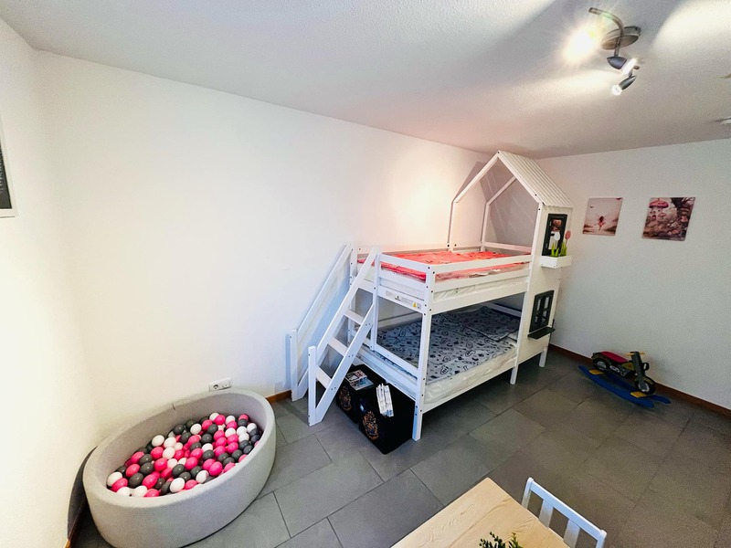 Bällebad, einer Turnmatte und einer Malecke wird der Aufenthalt zum unvergesslichen Erlebnis. Das Etagenbett in Form eines Hauses lädt zum Träumen und Spielen ein!
