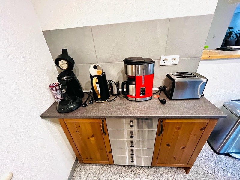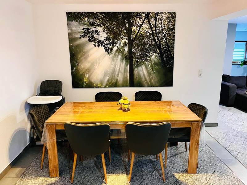 Im Esszimmer finden bis zu 6 Personen Platz, und ein Hochstuhl für die kleinen Gäste ist ebenfalls vorhanden. Die Küche lässt keine Wünsche offen: Kaffee, Tee, Öl, Essig, Salz, Paprika und Pfeffer