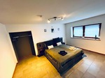 Zwei moderne, voll ausgestattete Bäder sorgen für entspanntes Miteinander. Die große Couch, die sich in ein bequemes Bett verwandeln lässt, ist ideal für kuschelige Fernsehabende. Schlafen Sie in